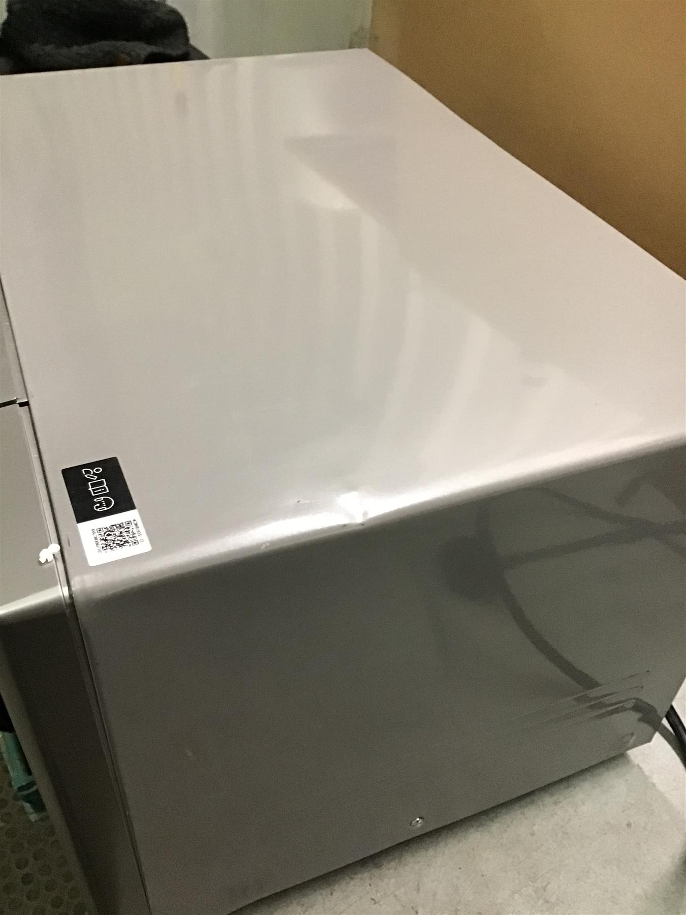 This unit has visible dents to the exterior casing. These are purely cosmetic and have been reflected in the price. The microwave has been fully tested and is in full working order.