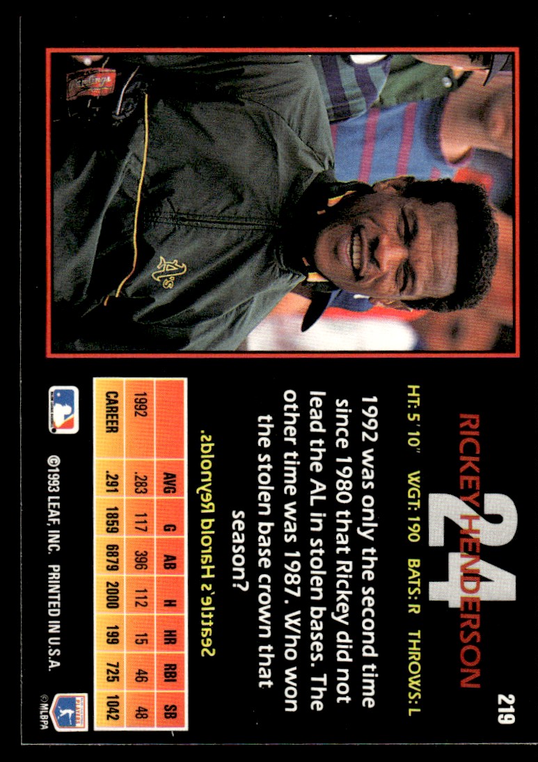 | 1993 Triple Play Rickey Henderson Oakland Athletics #219 |