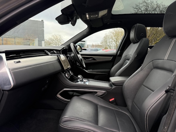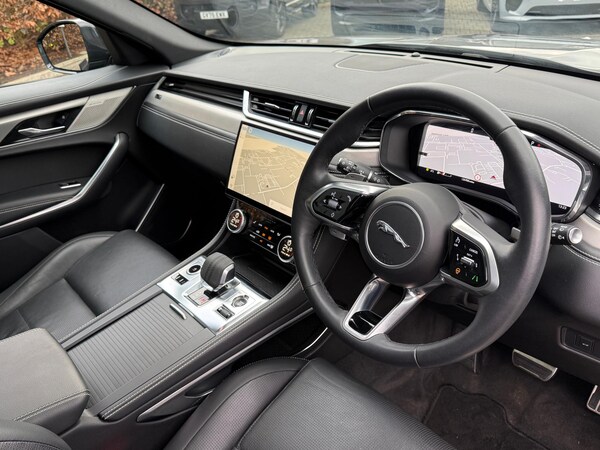 **12 MONTHS JAGUAR APPROVED WARRANTY AND FULL JAGUAR SERVICE HISTORY** FIXED PANORAMIC SUNROOF WITH POWER BLIND, REAR CAMERA, KEYLESS ENTRY, POWERED TAILGATE, ANDROID AUTO (R), APPLE CARPLAY (R), BLUETOOTH CONNECTIVITY, DAB RADIO, SATELLITE NAVIGATION, PRIVACY GLASS, EIGER GREY METALLIC PAINT, EBONY LEATHER INTERIOR, 20'' GLOSS BLACK ALLOY WHEELS, RED BRAKE CALIPERS, HEATED FRONT WINDSCREEN AND STEERING WHEEL FOR THOSE FROSTY MORNINGS, ELECTRIC HEATED FRONT SEATS WITH DRIVER MEMORY, MERIDIAN SOUND SYSTEM, CONFIGURABLE AMBIENT LIGHTING, RAIN SENSOR FRONT WIPERS, 4WD - ALL WHEEL DRIVE, TYRE PRESSURE MONITORING SYSTEM, LANE KEEP ASSIST, ADAPTIVE CRUISE CONTROL, 2 ZONE AIR CONDITIONING, REAR SEATS 40/20/40 SPLIT, SECURE TRACKER PRO - SUBSCRIPTION REQUIRED. HARWOODS JAGUAR CRAWLEY are delighted to offer this Jaguar F-PACE 2.0 D200 MHEV R-Dynamic SE Black SUV 5dr Diesel Auto AWD Euro 6 (s/s) (204 ps). Be assured all approved Jaguars are offered with a minimum 12 months Jaguar approved warranty and European roadside assistance. Our Jaguar Technicians carry out a 165-point check on every vehicle, as well as independent mileage and history checks.? We are proud to be part of the Harwoods group, a family run business established in 1931. With 3 Approved Jaguar retailers within our group, we have access to over 500 vehicles. If this isn't the right car for you our Group stock has specification to include Sunroof, Leather, Heated Seats, Apple Car Play, Heated Steering Wheel, Reverse Camera, Rear Entertainment, Deployable Towbar, 360-degree camera, Meridian Audio, Panoramic Sun Roof, Tow Bar, Black Pack, Air Suspension, Adaptive Cruise, Massage Seats, Refrigerator, Dynamic Pack, Head up Display, Hard Top, Utility, Autobiography, SVR, AWD, LWB. Other colour options including Black, Blue, Green, Silver, White, Red, Grey & SVO. Interior options of Ebony, Black, Ivory, White, Tan, Cream, Oyster, Caraway, Pimento, & Euro 6 ULEZ compliant drive trains. (As a Land Rover approved centre, we can service Urban, Overfinch, & Twisted converted vehicles too).