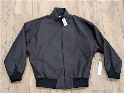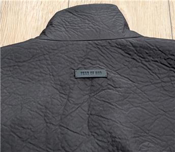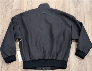 Fear of God's track jacket is styled with a stand collar. This piece features a front zip closure and elasticized hem.
