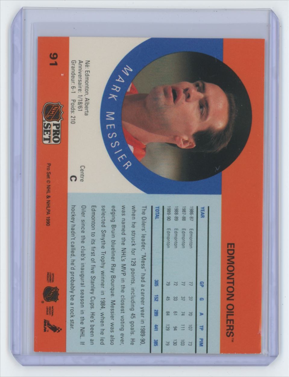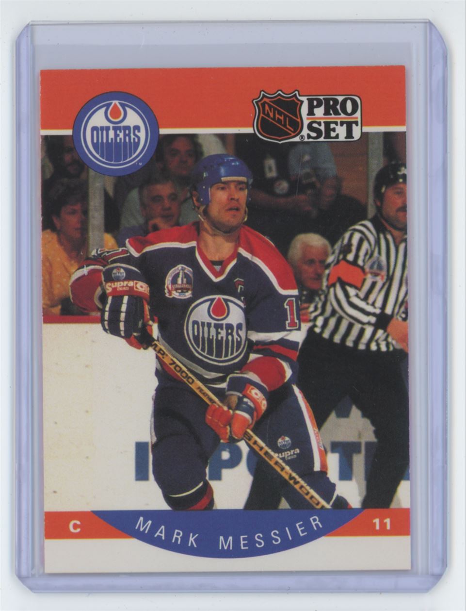| Description: | Mark Messier | | Category: | Hockey | | Year: | 1990 | | Product: | Pro Set | | Team: | Edmonton Oilers | | Card Number: | 91 | | Memorabilia: | . | | Special: | | | Dimensions: | 4" x 3" |