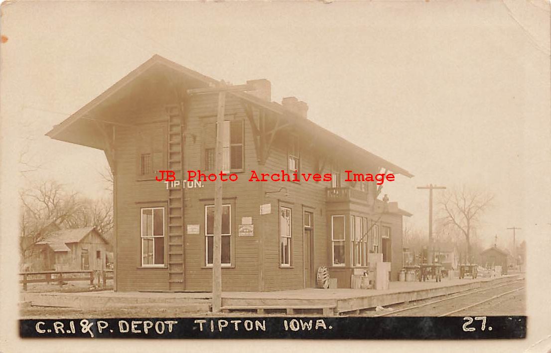 Depot, Iowa, Tipton, RPPC, Chicago Rock Island & Pacific Railroad Station, Photo