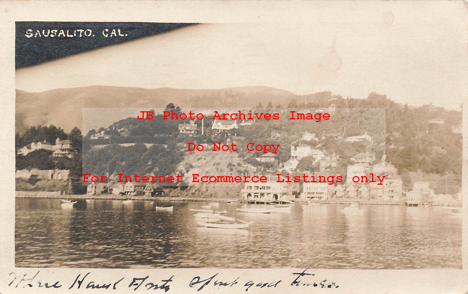 This is a nice vintage early real photo postcard showing a scene of Sausalito, Marin County, California.