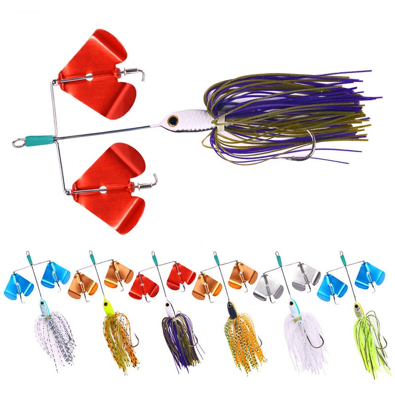 6 Pcs Spinner Bait Fishing Lures Jig Head Spoon Metal Buzzbait Blade Tackle