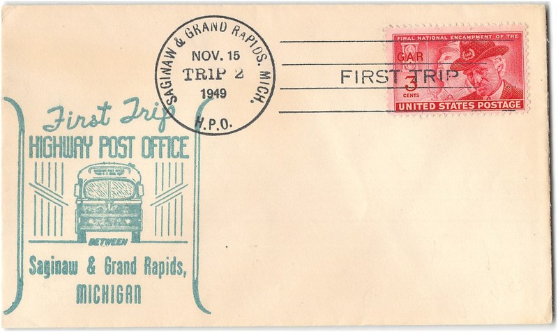 | HPO 1949 Trip 2 between Saginaw and Grand Rapids MI, bus cachet |