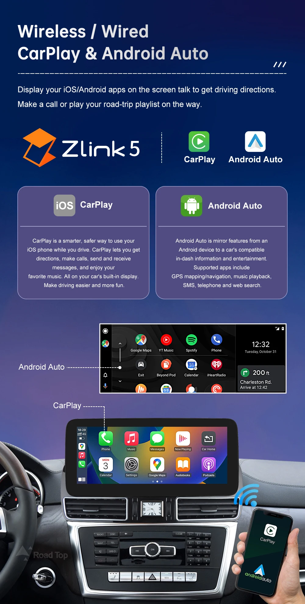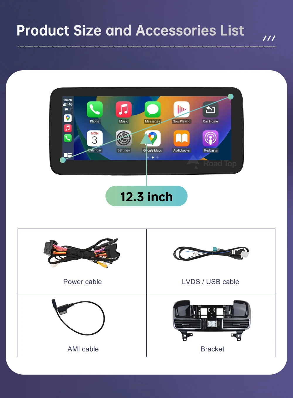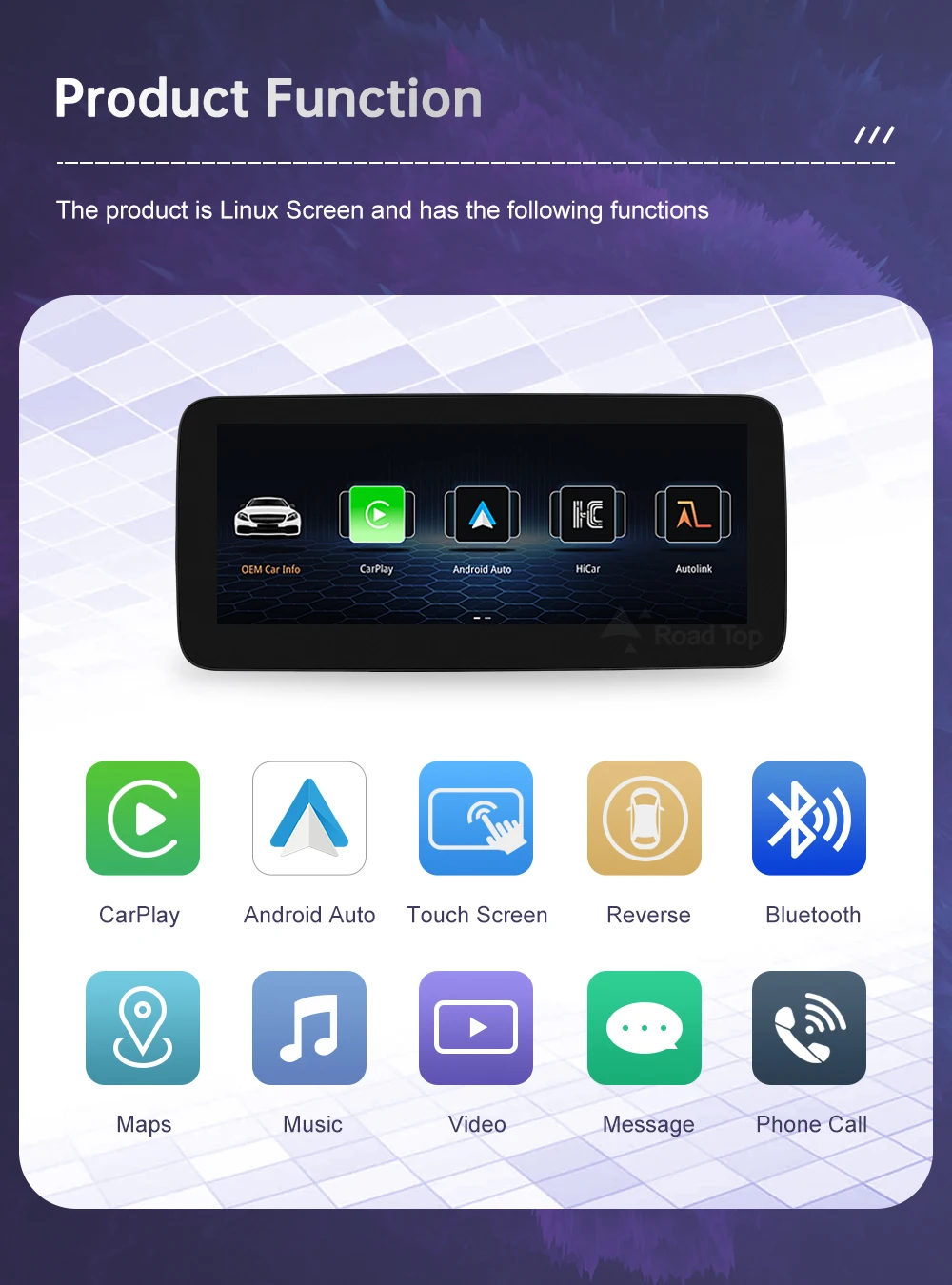 This is a multimedia touch screen with built-in Apple CarPlay and Android auto. It will replace your OEM screen and add the following features to your car.