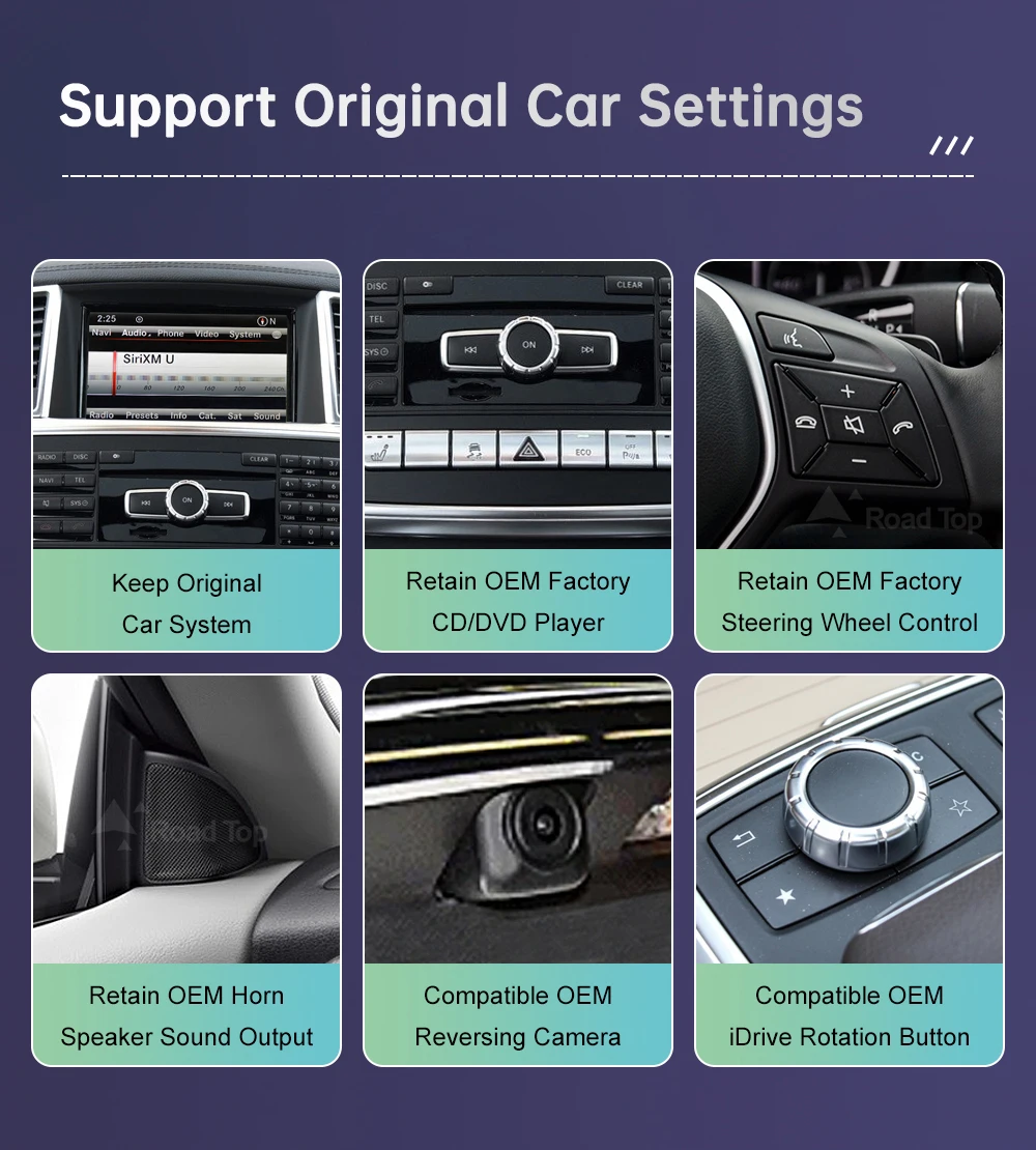 Compatible with all original OEM features. Contains steering wheel buttons, iDrive knobs, parking sensors, cameras, and more.