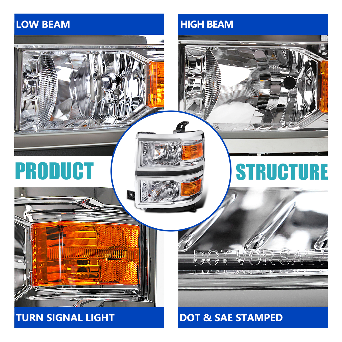 For Chevy Silverado 1500 Pickup Clear Headlights+LED Tail Lights Parking Brake L