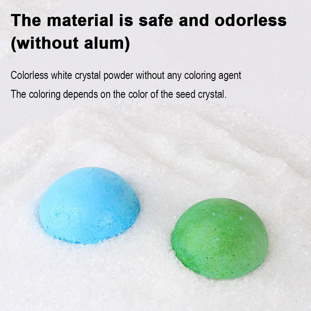 2. Premium Materials & Reliable Growth: Crafted with utmost care, our crystal powder is white and odorless. The brilliant colors of your crystals originate from the specially developed crystal seeds, ensuring no artificial pigments are added to the powder. Our dedicated professional team conducts extensive research and precise ratio experiments, continuously improving the formula to ensure crystal powder grows concentrated on the seed, preventing clumping and promising successful formation every time.