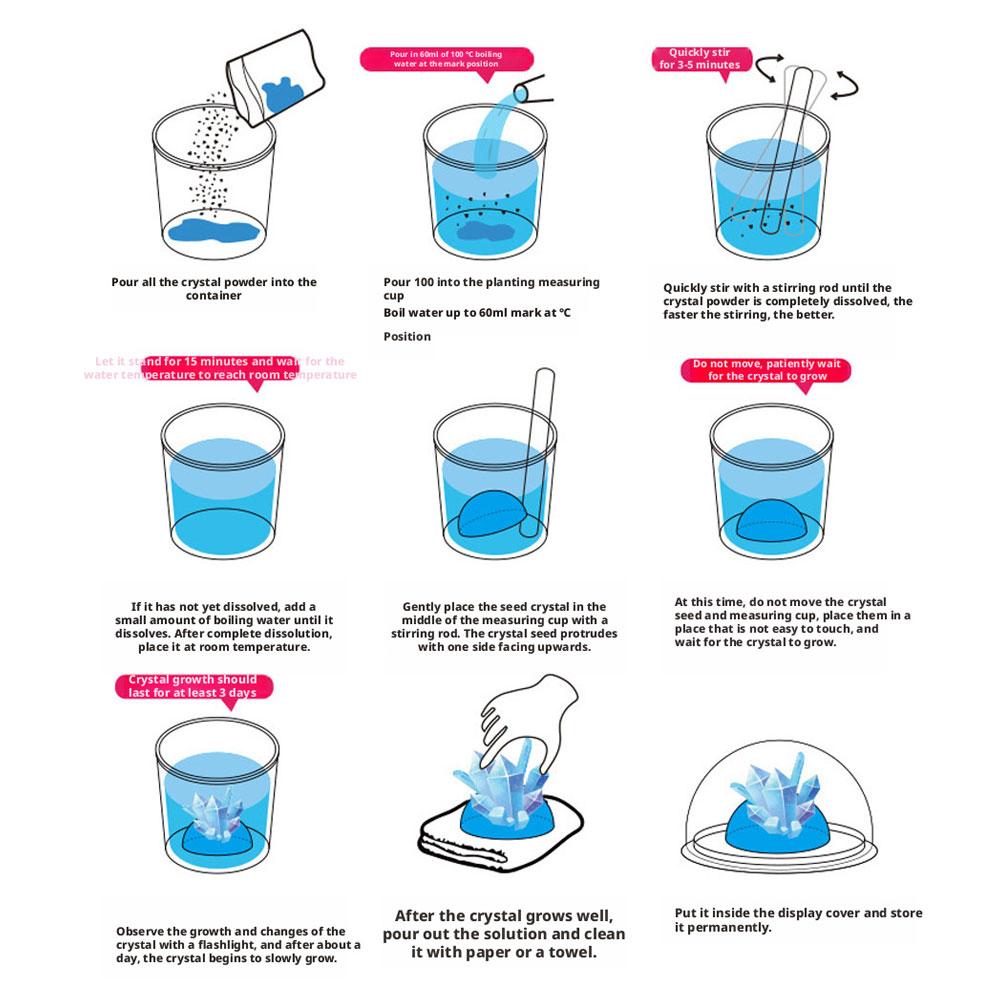 4. Engaging STEAM Activity: Dive into a truly enriching DIY project with our crystal crafting kit. It's a perfect activity for curious minds, allowing you to easily follow simple steps to grow your own marvelous crystals and gain a unique insight into natural geological processes. This educational set is ideal for children aged 8 and above, or younger children with adult supervision to ensure a safe and fun learning experience.