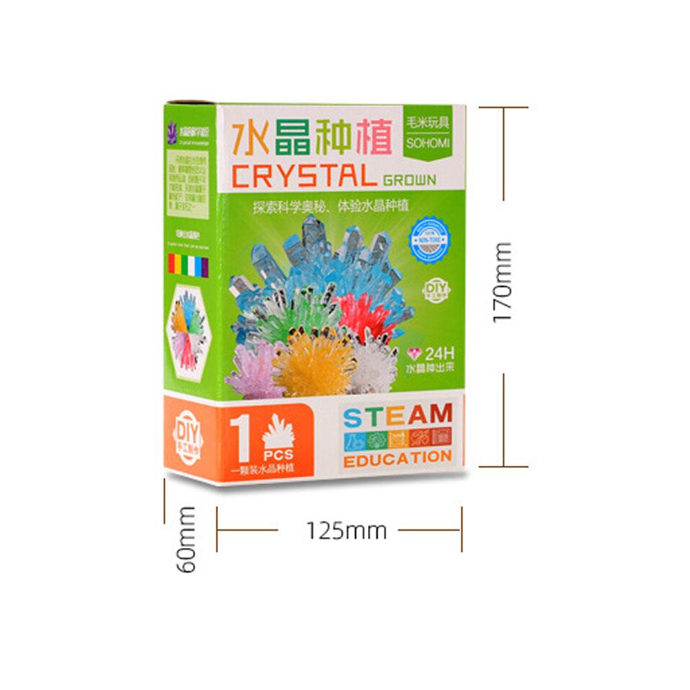 3. Crystal Kit Contents: This comprehensive kit includes a measuring cup, crystal powder, a crystal seed, and a clear display cover, all meticulously designed for an optimal growing experience. The kit's packaging measures approximately 12.5 cm x 6 cm x 17 cm (4.9" x 2.4" x 6.7"), making it a perfectly sized and exciting gift for young scientists.