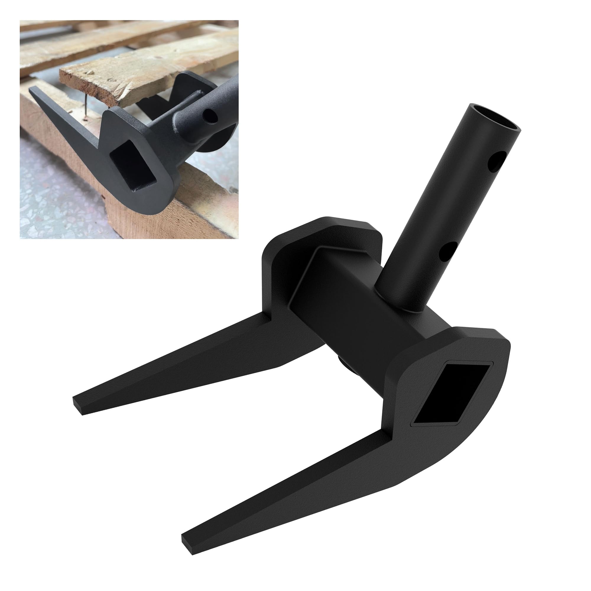 【Product Size】The pallet disassembly tool shank has an outside diameter of 1"the space between the forks is 3.3''/84 mm, can detachable items weighing less than 500 pounds suitable for most pallets. Whether at work or at home, the pallet buster is a must-have tool for anyone who has to deal with broken pallets.Please note that this model does not come with a handle.