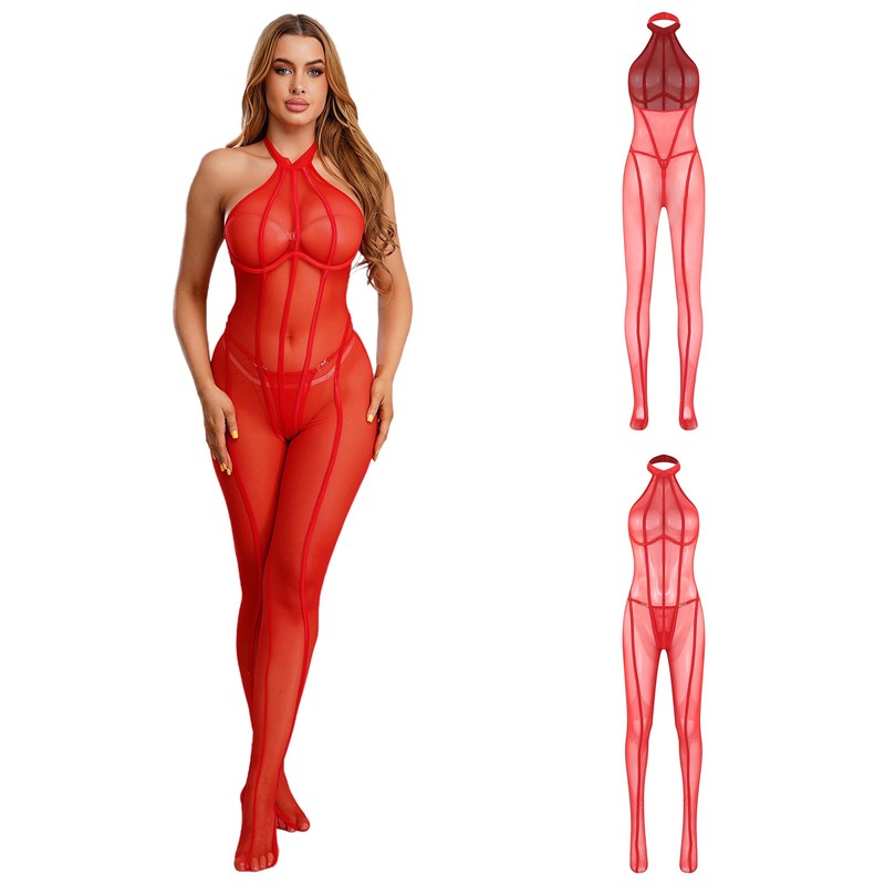 Women’s one-piece erotic hollow out netted bodystockings lingerie, one size fits most.