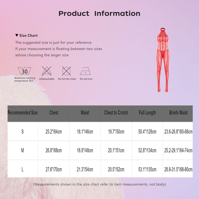 Bust: 50-110cm/20.0-43.0 inch, Neck to Crotch(no stretch): 60cm/24.0 inch