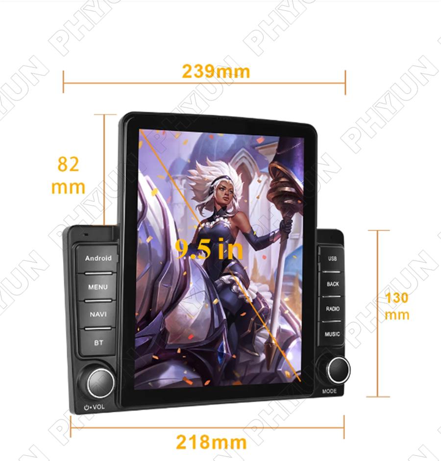 General | - Power Supply: DC 12V (allowance range: 10.8-14.5V) - Max. Current: 10A - Screen Size: 9.5 inch - Front panel Size: As picture show |