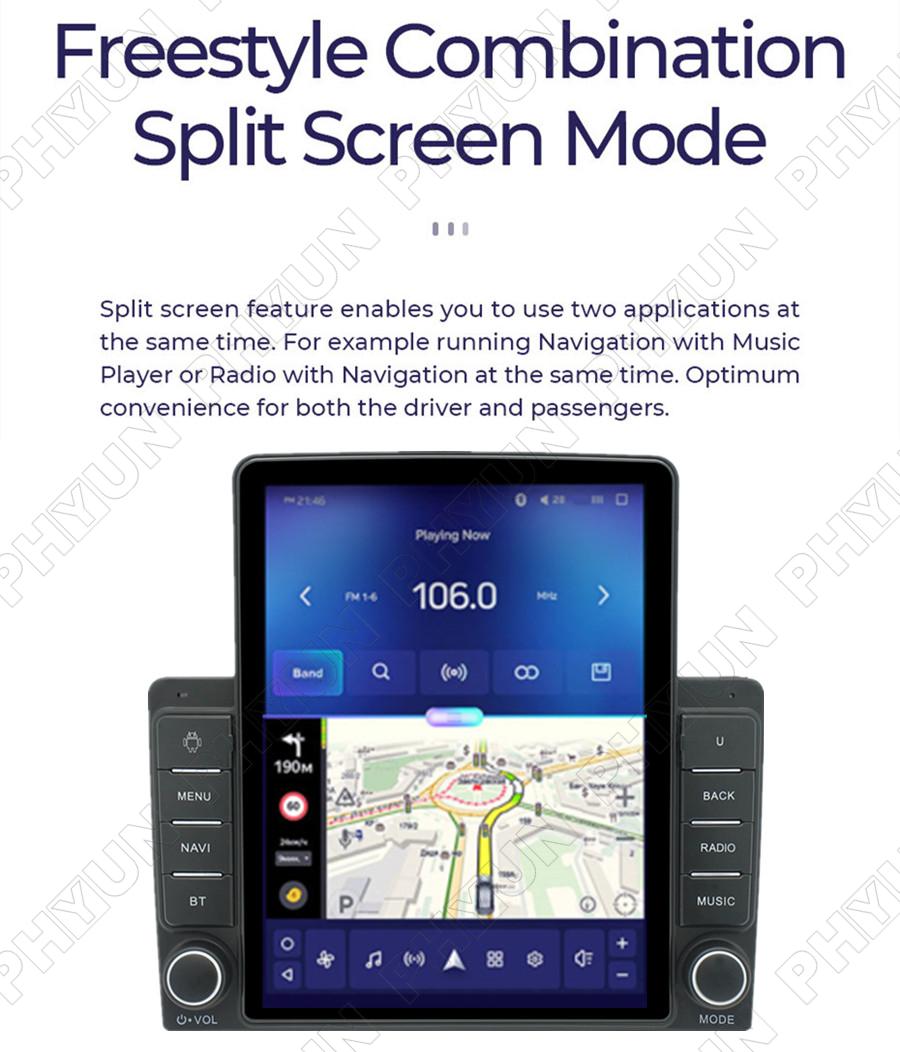 Display | - Touch Screen: Yes - Resolution: 1024*768 - Capacitive or Resistance Screen: Capacitive - Built-in Clock and Calendar: Yes, show real time and can use network-provided time- Main Menu Status Bar display: Can be changed to Music/Radio/BT-Stereo Player and Clock/Date/Week - Change Apps-Icon Position: Yes - Spilt Screen: Yes Split
