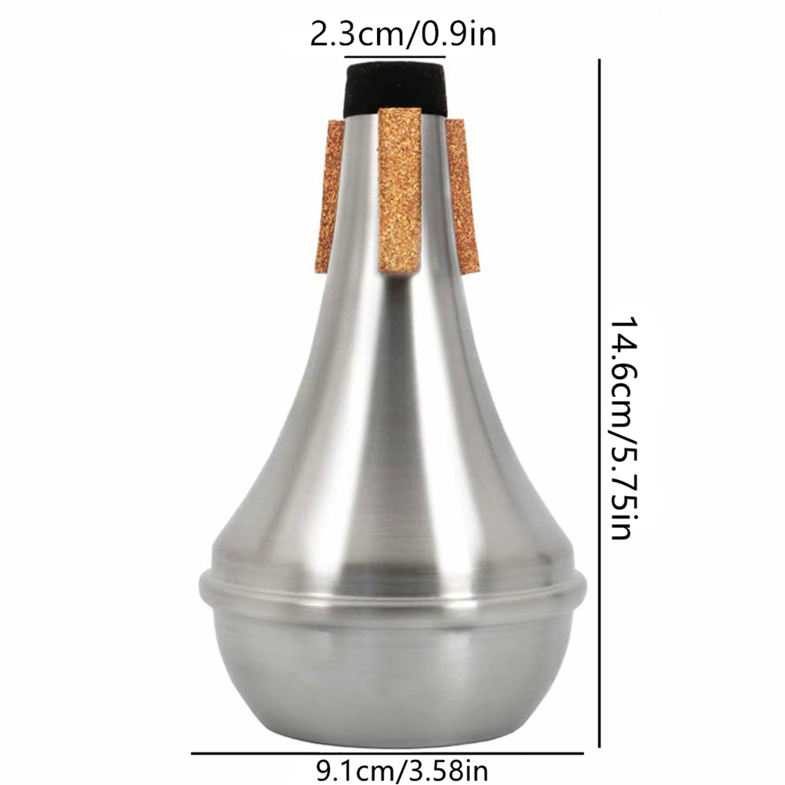 4. Made of high-purity spun aluminum, each mute is given a Scotchbrite finish. Portuguese cork strips line the neck for easy insertion and removal.