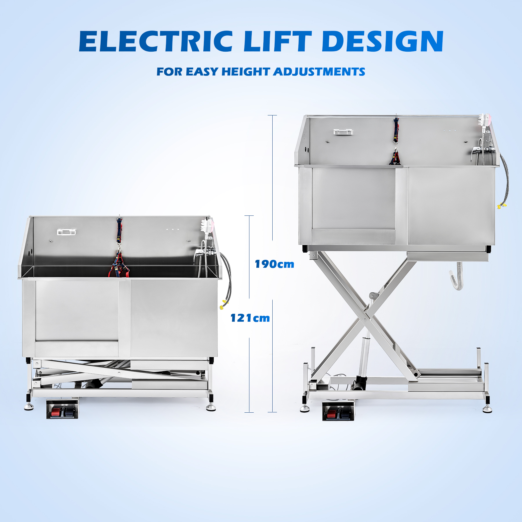 Input Power: 220-240 V~ 50 Hz Rated Power: 65W Material: Stainless Steel Color: Silver Overall Dimensions: 50 x 25 x 48-75 in. (128x64x121-190 cm) Bathtub Dimensions: 48 x 23 x 20 in. (123x59x50 cm) Backsplash Dimensions: 48 x 14 x 1 in. (122.5x35x2 cm) Net Weight: 141 lb. (64 kg) Weight Capacity: 240 lb. (110 kg) |