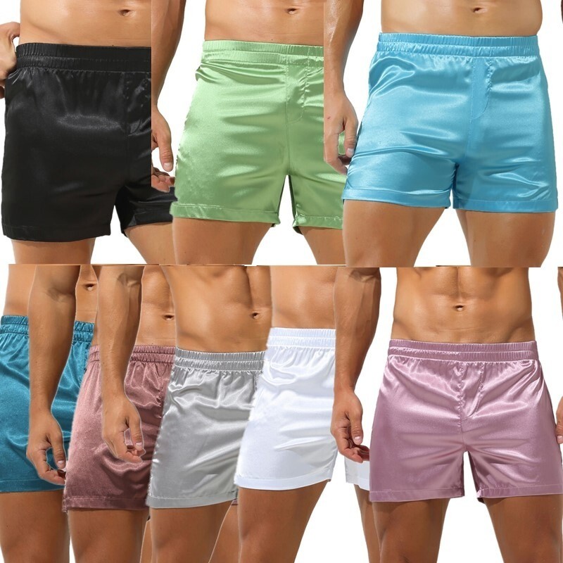 Mens Elastic Waistband Satin Shorts Underwear Mid Waist Side Split Boxer Brief.
