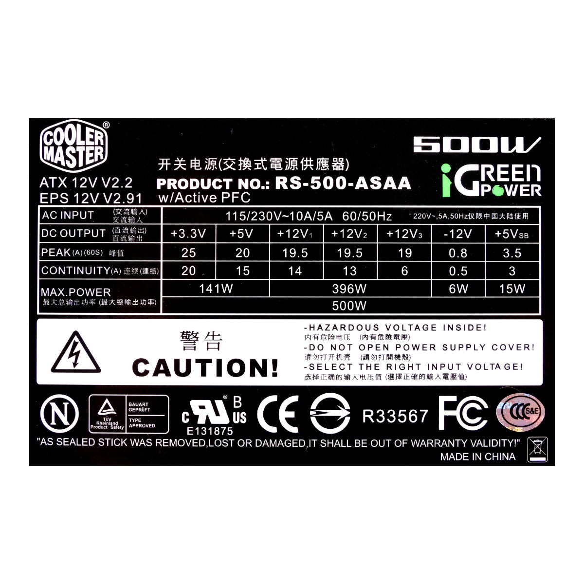 COOLER MASTER RS-500-ASAA 500W ATX 20+4-PIN ATX12V PCIe SATA MOLEX FDD