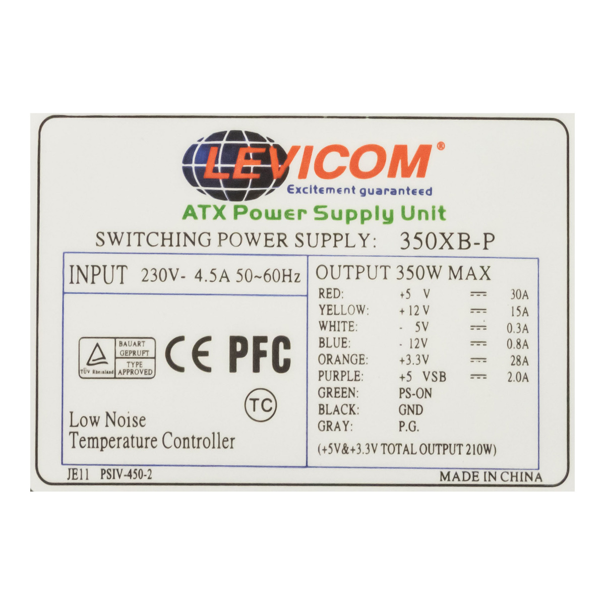 LEVICOM 350XB-P 350W ATX 20-PIN ATX12V SATA MOLEX FDD AUX