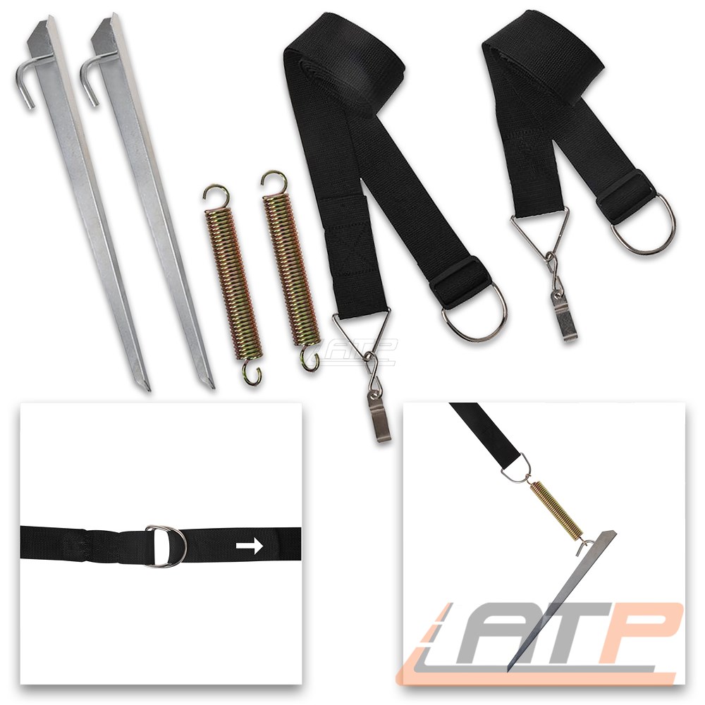 Befestigungs Set für Omnistor Markisen - für den ultimativen Halt auch bei Wind und Wetter! Spezielle Adapter werden direkt in das Markisen Gestell eingehängt. Gurte aus hoch strapazierfähigem Nylongewebe für mehr Stabilität. Gurte sind teilbar für leichten Abbau. Spannfedern gleichen Reiß- und Zugkräfte durch Windböen aus.