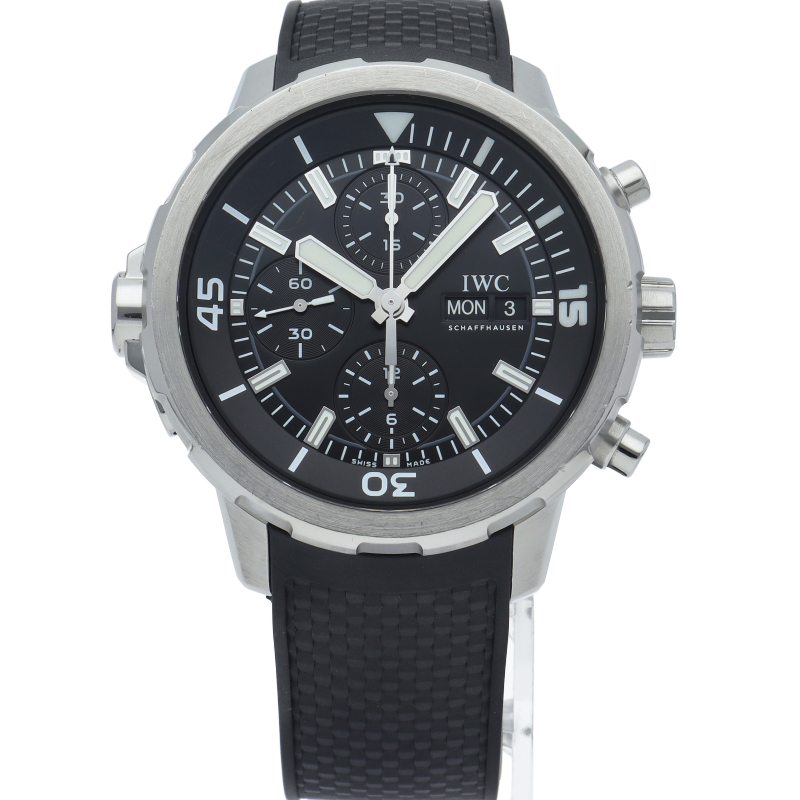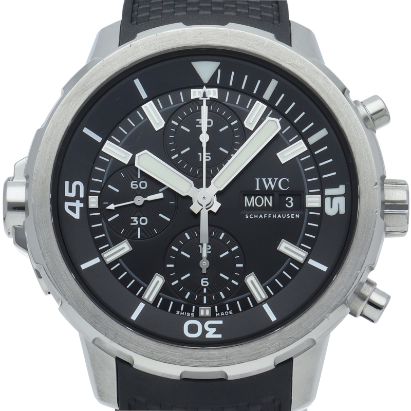 | In the 1960s, when marine sports were becoming more popular, the "Aquatimer" was born as a full-fledged waterproof diver's watch. With a 44mm case size, rotating bezel, and simple indexes that are easy to see, it's a diver's look. |