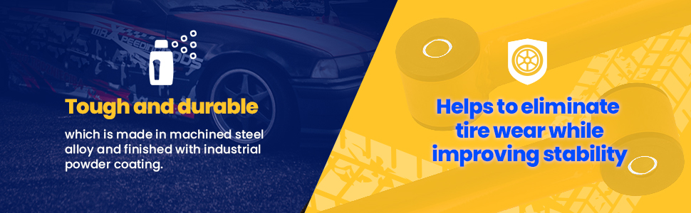 Poly bushings reduce abnormal squeaks and vibrations while driving, eliminate uneven tire wear