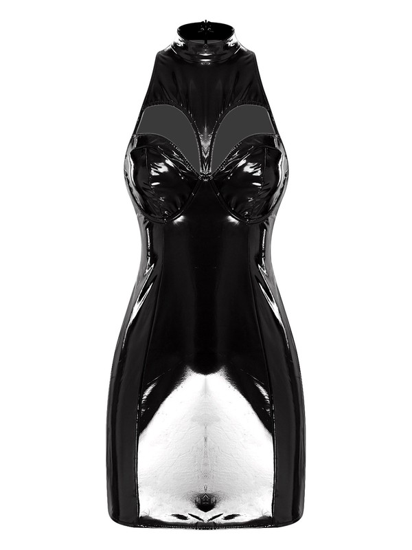 The wet-look finish gives the dress a modern and edgy appearance, making it a trendy choice for fashion-forward women.