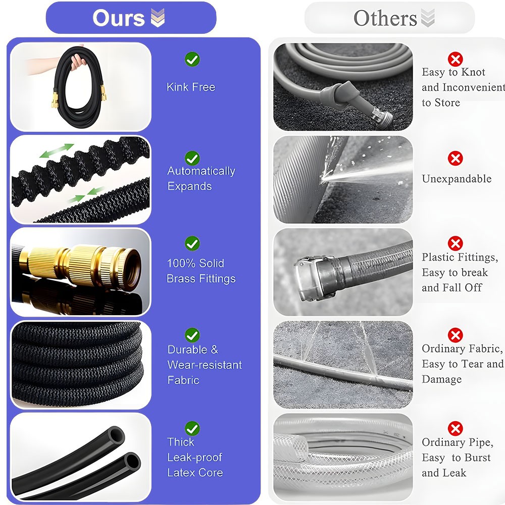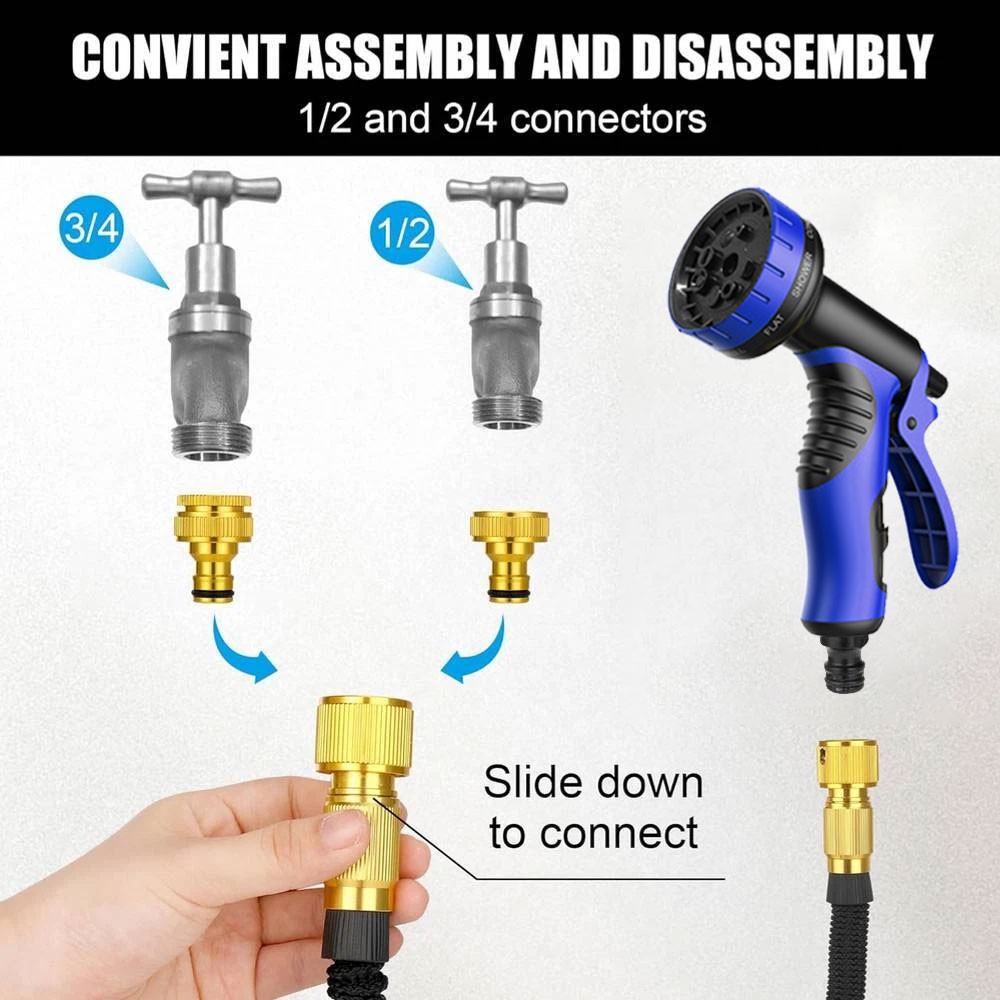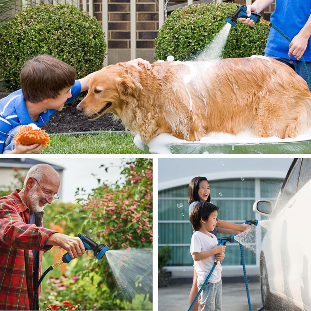 💯Multi-use Watering Hose - The expandable hose has wide range of applications: watering garden, cleaning the house, cleaning the floor, cleaning the yard, cleaning the pool, washing the car, bathing pets, etc. Can also be used as water toy in summer, enjoy fun and relax with your kids.