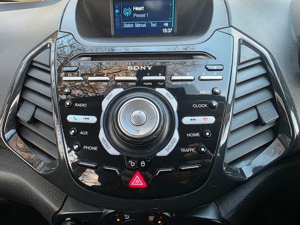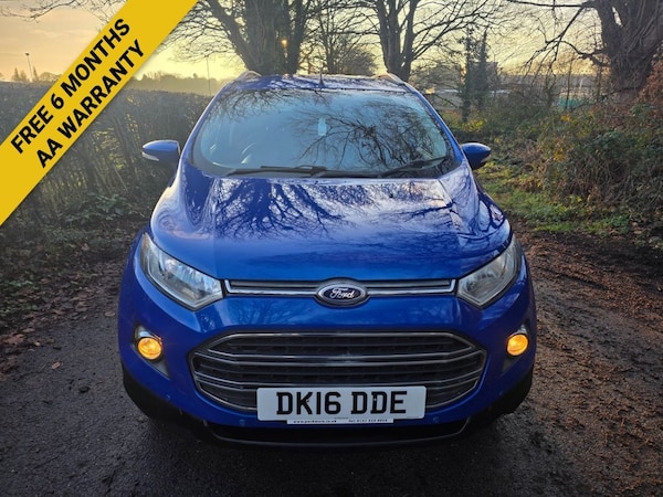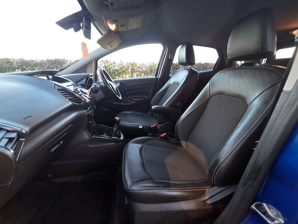 The Ford EcoSport 1.0T EcoBoost Titanium combines agile performance with practical urban SUV versatility. Powered by a responsive 1.0-litre EcoBoost petrol engine paired with a smooth manual gearbox and efficient 2WD system, it delivers lively acceleration and excellent fuel economy. The Titanium trim elevates your drive with premium features including sleek alloy wheels, advanced SYNC infotainment with Apple CarPlay and Android Auto, rear parking sensors, and stylish LED daytime running lights. Compact yet confident, the EcoSport offers raised driving position, flexible interior space and smart storage solutions — making it an ideal choice for modern city driving and weekend adventures alike. All our cars come with a FREE 6 Month AA Warranty, 12 Months MOT and service, a pre delivery report and Showroom Valet. We are happy to arrange finance for you if needed. We can take your old car as part exchange and clear any outstanding finance. We can deliver all over the UK. Please note we operate on an appointment only basis so please call or email us on to book in an appointment.Thatcham Category 1 Alarm, Glovebox - Cooled, Silver Roof Rails, Slide Out Drawer Under the Front Seat, Radio CD Player MP3 Compatible, 16in Alloy Wheels - 6 Spoke, ABS - Anti-lock Braking System, AUX Connection, Airbag - Front Passenger, Airbags - Curtain, Airbags - Passenger Deactivation, Airbags - Side Impact, Card Holder, Central Locking - Keyless Entry, Chrome Grille - Large, DDS - Deflation Detection System, Daytime Running Lamps, Door Handle Integrated in Rear Light, Drivers Airbag, EATC - Electronic Automatic Temperature Control - Climate Control, Electric Windows - Front and Rear, Floor Mats - Carpet - Front and Rear, Ford Power Starter Button, Front Fog Lights, Front Skid Plates, Glovebox - Cooled, Handbrake Cover - Leather, Power Assisted Steering, Radio CD Player MP3 Compatible, Rake Adjustable Rear Seat, Rake and Reach Steering Adjustable, Rear Skid Plates, Seats - Drivers Lumbar Support, Seats - Drivers Manual Height and Tilt Adjustment, Silver Roof Rails, Slide Out Drawer Under the Front Seat, Spare Wheel with Cover - Alloy, Steering Wheel - Audio Controls, Steering Wheel - Leather, Stowage Pockets - Front Seatback, Sunglasses Holder, Thatcham Category 1 Alarm, Trip Computer, Tyre Pressure Monitoring System, USB Connection
