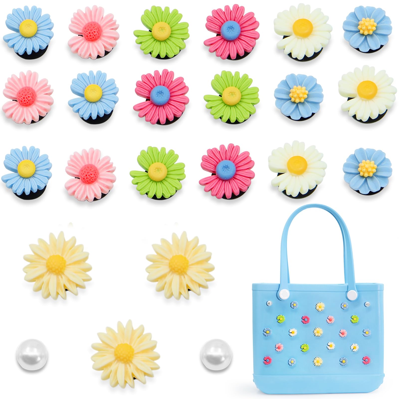 【Compatible With Bogg Bag Accessories】 23 pcs flowers and pearls set, perfect for decorating your beach bag and similar bags, add a touch of personality to your rubberized beach bag, enrich your beach bag, the set combination is better to share with your friends!