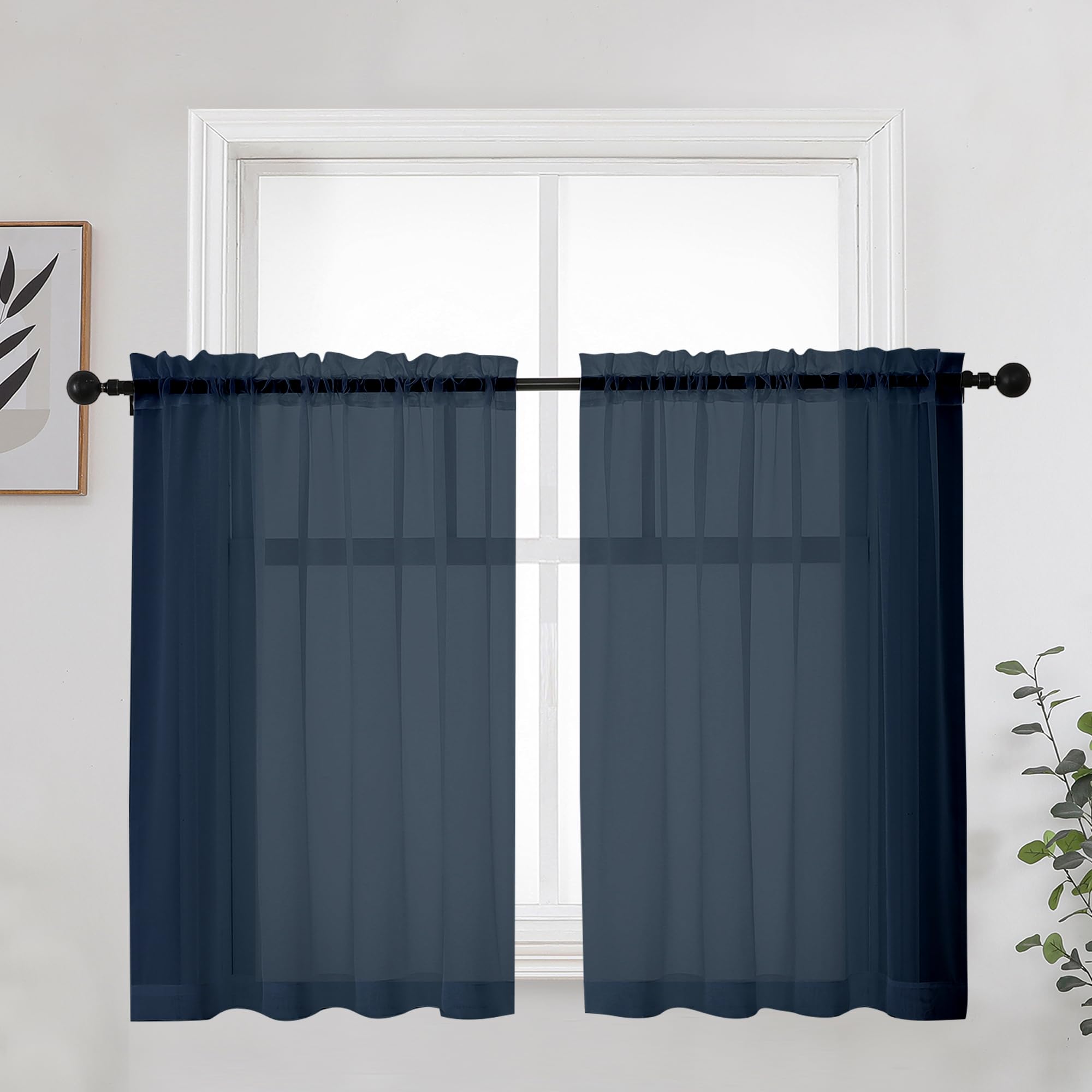 OWENIE Blue Sheer Curtains 36 Inches 2 42"W x 36"L (Pack of 2), Navy