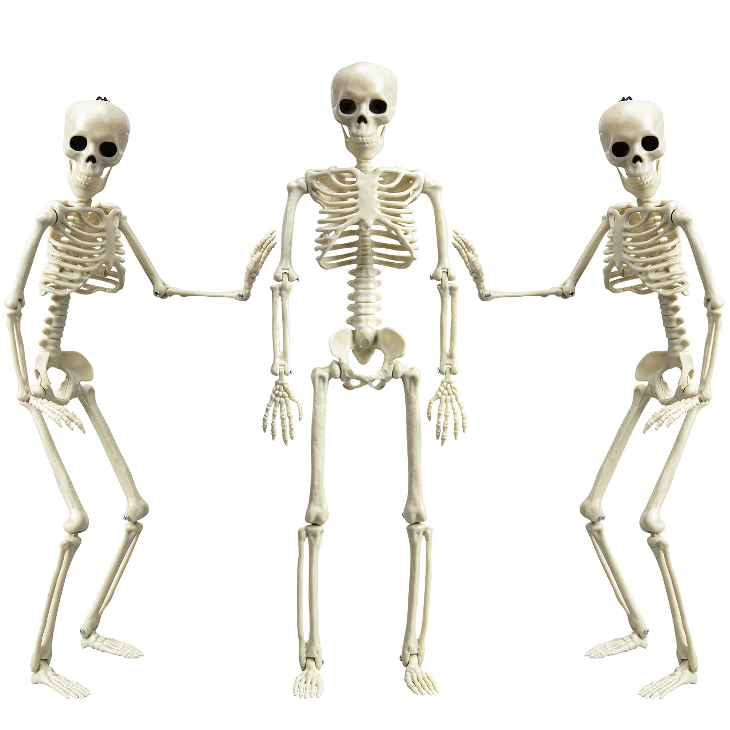 - Package include: 3pcs Full body plastic Halloween skeleton with posable joints-16” tall