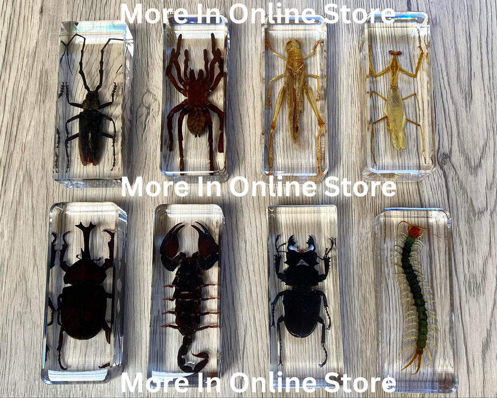The specimens has been sustainably sourced from individual collectors and die naturally to be collected and preserved in alcohol and set in resin.