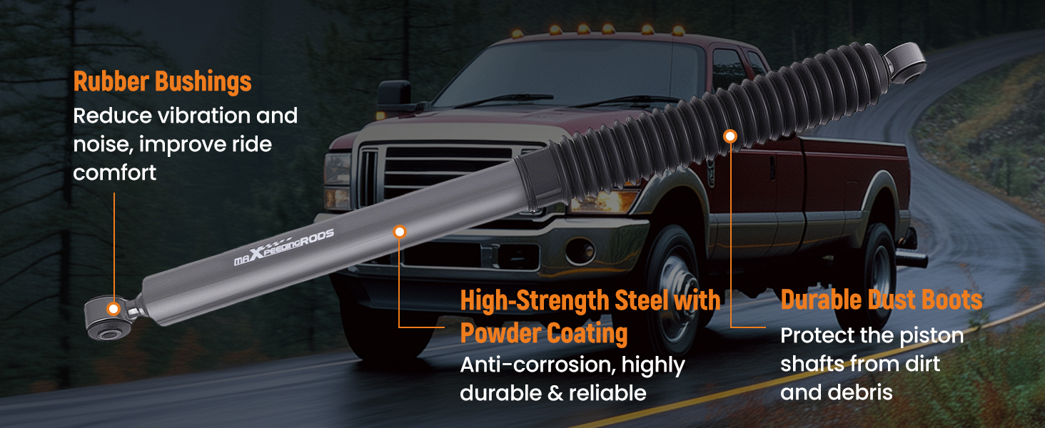Premium rubber bushings deliver superior shock absorption and smoother rides, reducing vibration and road noise.