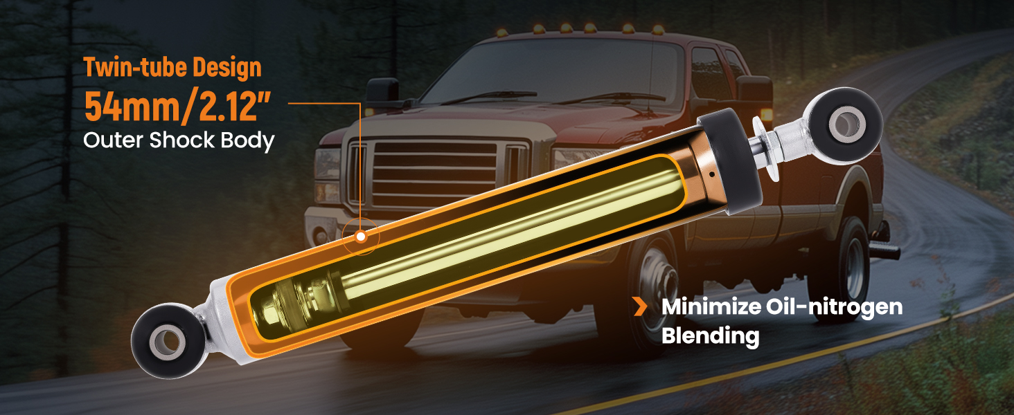 Premium twin-tube shock absorber charged with high-pressure nitrogen, engineered for maximum durability and consistent performance.