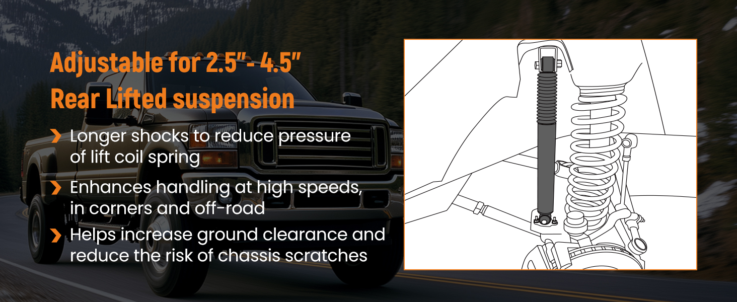 NOTE: only fit models equipped with 2.5-4.5" of suspension lift.