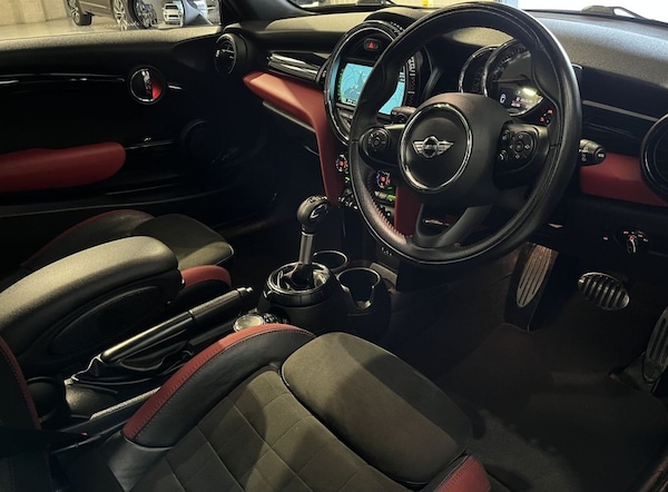 .12Volt Socket in Front Centre Console, 17in Alloy Wheels - John Cooper Works Track Spoke - Silver, 3 Point Seatbelts on all Seats, 3rd Brake Light - LED Along Top of Rear Window, Air Conditioning - Manual, Airbags for Driver and Front Passenger - 6 Airbags as Standard, Alarm and Immobiliser - Thatcham CAT 1, Anthracite Headlining, Anti-Lock Braking System - ABS, Automatic Door Window Lowering by Approx 6mm When Door Opens, Bluetooth Hands Free Function with USB Audio, Boot Release via Remote Control, Brake Pad Wear Indicator, Chrome Bezels around Rear Lights and Headlights, Chrome-Plated Fuel Filler Cap in Rear Right Side Panel - Linked to Central Locking, Colour Line - Carbon Black, Condition Based Service, Crash Sensor, Cruise Control with Brake Function, Cupholders - Two in Front and One in the Rear Centre Console, DAB Tuner, DTC - Dynamic Traction Control with EDLC - Electronic Differential Lock Control, Decorative Rings Surrounding Dashboard Instruments in Chrome Plated, Door Handles - Chrome Plated, Door Sill Finishers - Metal Look and Model Dependent Lettering, Dynamic Stability Control - DSC, Easy Entry Access to the Rear Seats and Memory Function for Drivers Seat Base, Engine Scoop in Body Colour, Exhaust Tailpipe - Visible Double Round Central with Chrome Finishers, Exterior Mirrors - Aspheric on Drivers Side - Electrically Adjustable, External Visible VIN, Foldable Rear Backrest 60-40, Follow Me Home Function, Front Passenger ISOFIX and Airbag De-Activation Switch, Front Side Indicators - White, Fuel Pump Automatic Cut-Off in Crash Situation, Gearshift Lever Knob - Leather with Red Seam, Gearshift-Selector Lever and Handbrake Lever Gaiters in Sensatec Artificial Leather, Handbrake Lever Grip - Plastic, Headrests For All Seats - Manually Adjustable and Two Rear Folding Headrests, Heated Mirrors and Windscreen Washer Jets, Heated Rear Window with Automatic Deactivation, Heated Window Heater, Intelligent Emergency Calling - E-Call, Interior Door Handles - Chrome Plated, Interior Lights - Integrated into Centre Front Headliner, Interior Mirror - Mechanical Anti-Dazzle, Interior Surface in Black Chequered Design, Interior Trim - Black Chequered, John Cooper Works Aerodynamic Kit, John Cooper Works Leather Steering Wheel, John Cooper Works Roof Spoiler, John Cooper Works Sport Seats, LED Headlights and Daytime Running Lights and Tail Lights, Lashing Eyes in Luggage Compartment, Locking System with Central Locking, Luggage Compartment - Light, MI