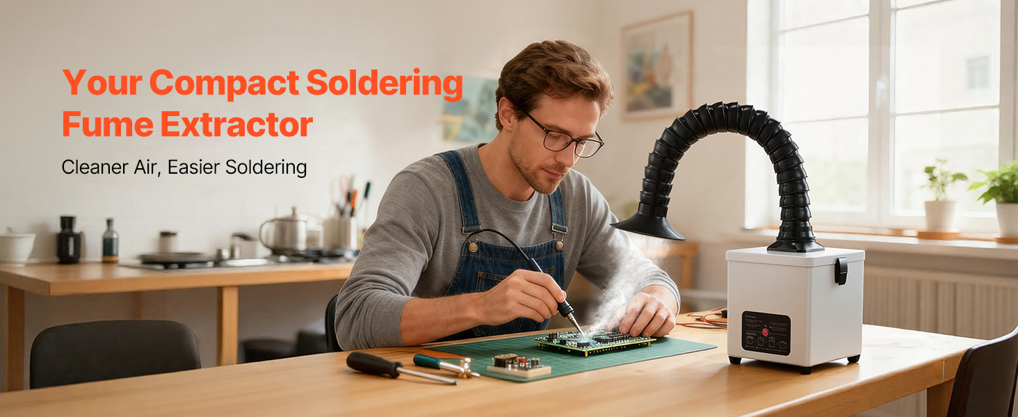 Ottimizza la tua esperienza di saldatura con un aspiratore di fumi progettato per garantire un ambiente di lavoro più pulito. Grazie al sistema di filtraggio a tre stadi, al motore brushless durevole e a un flusso d'aria potente fino a 180 m³/h, questo dispositivo cattura efficacemente i fumi generati durante la saldatura.