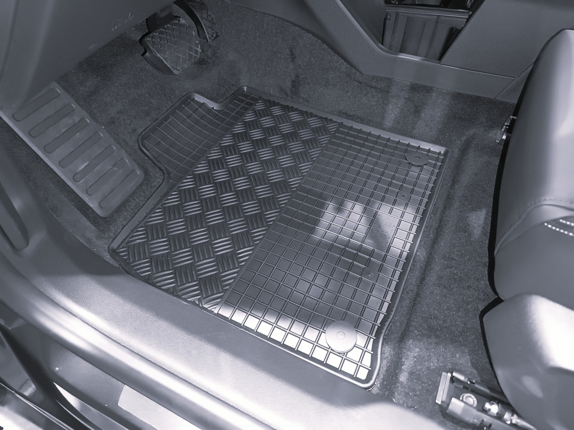 Fahrzeugspezifische Gummi-Matten, aus besonders haltbarem, hochwertigem Gummi-Gemisch gefertigt (kein Plastik), lösemittelbeständig und wasserundurchlässig.