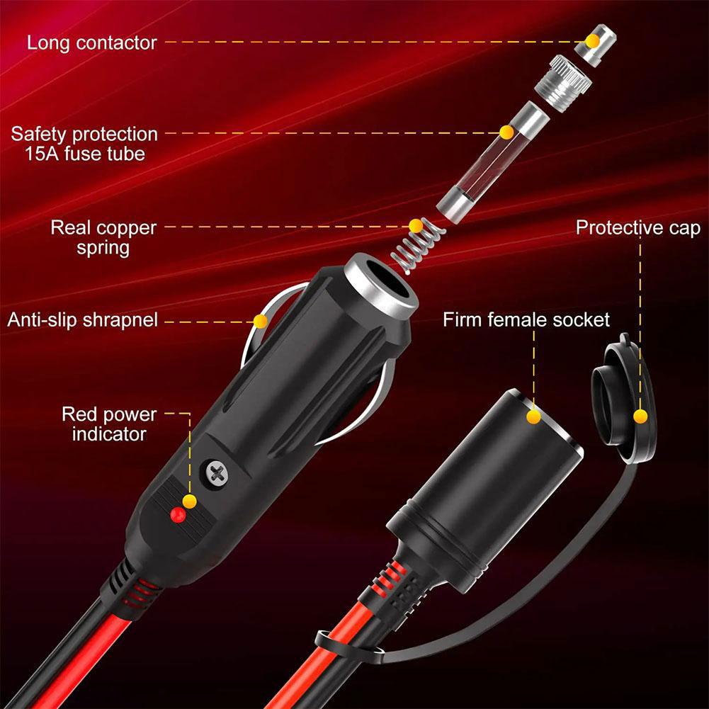 Suitable for car, motorcycle, truck cigarette light power plug extension cord.
