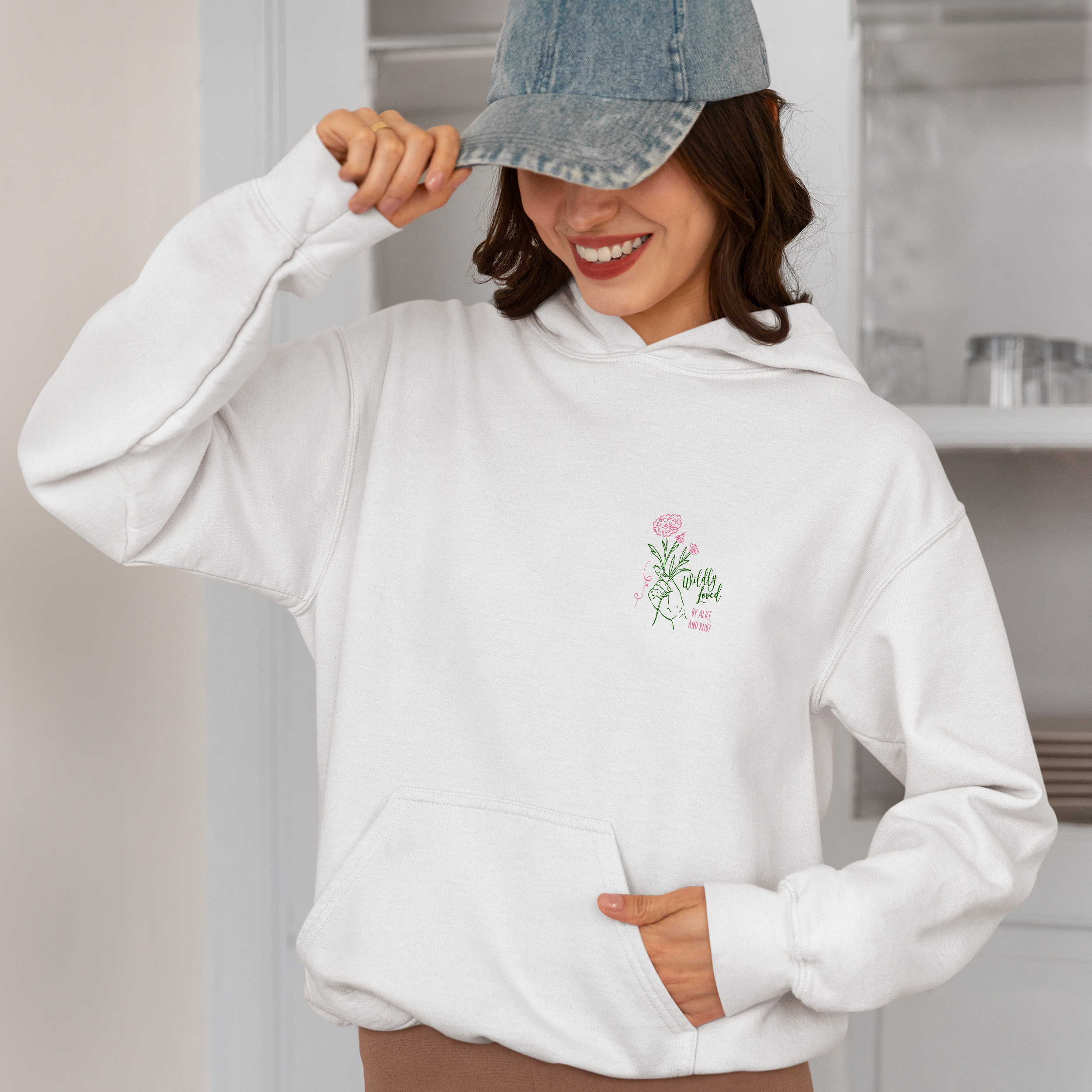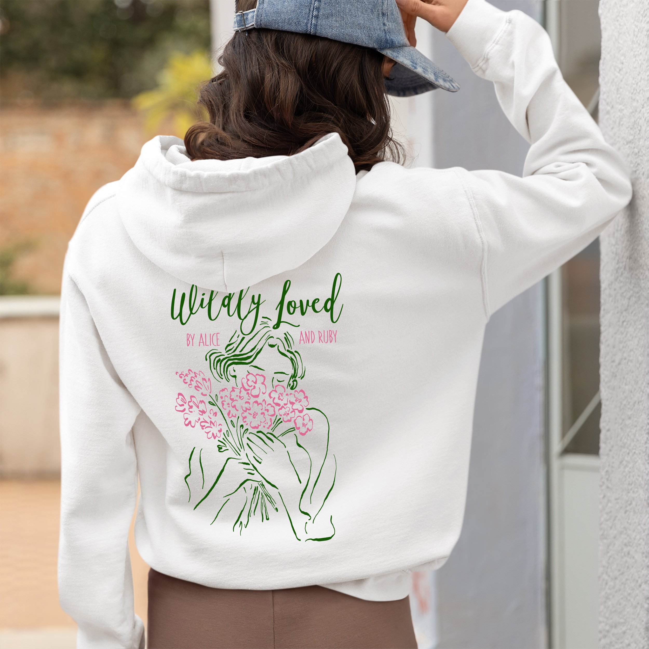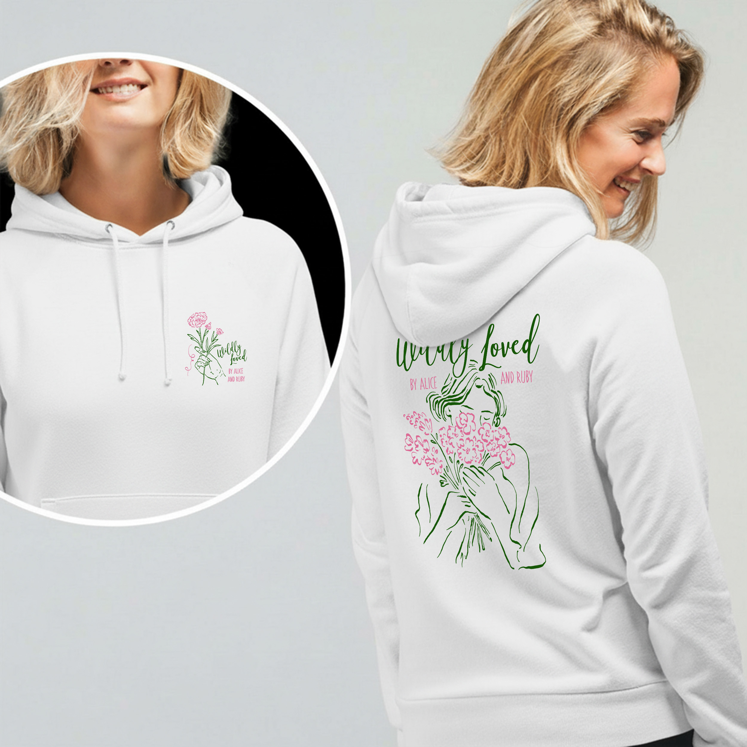 Wildly loved mum hoodie with flowers outline and custom childs name therefore ideal for Mothers Day gifting and family presents
