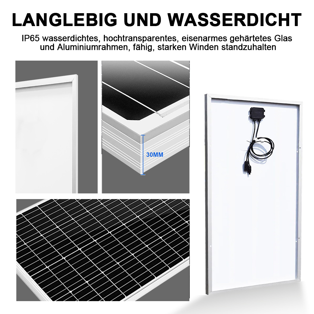 【Hoher Wirkungsgrad und Langlebig】Monokristalline Silizium-Photovoltaikmodule von Gliese erreichen Wirkungsgrade von bis zu 23% ,Die Lebensdauer liegt bei mindesten 20 bis 30 Jahren. Der Wartungsaufwand ist zusätzlich sehr gering, da kaum Verschleiß an dem Solarmodul ensteht.