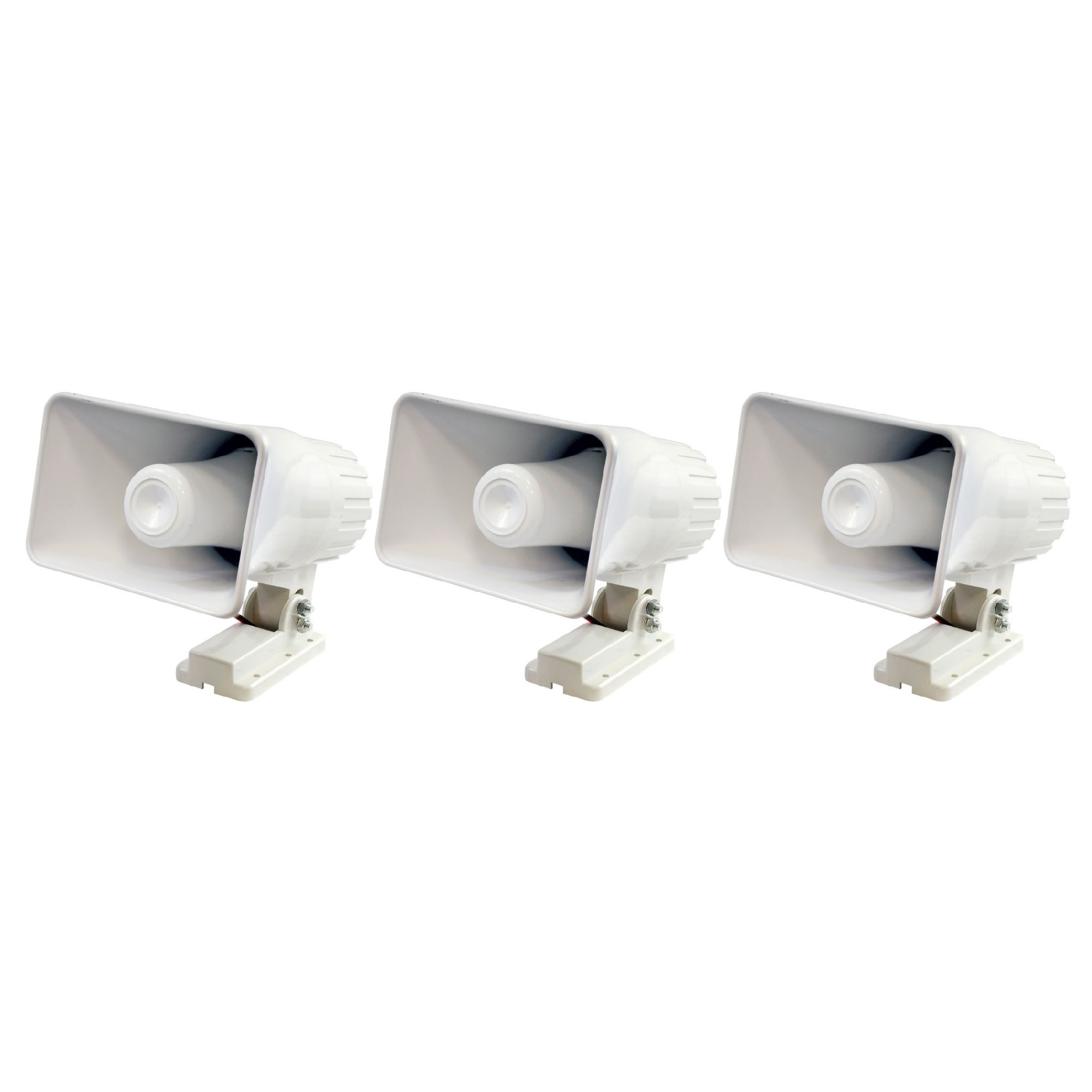 The PYLE PHSP4 6" 50W 8 Ohm Indoor/Outdoor PA Horn Speaker can handle 65 Watts of power, has an 8 ohm impedance, and includes a mounting bracket and mounting hardware. It also has SPL of 100dB, frequency response of 500Hz to 5kHz. Listen to music indoors or outdoors with the PYLE PHSP4 6" 60W 8 Ohm PA Horn Speaker! The dimensions of this horn are 6" H x 4" W x 8'' D. This indoor/outdoor horn speaker also comes with 1 year warranty for your piece of mind. (3 Pack)