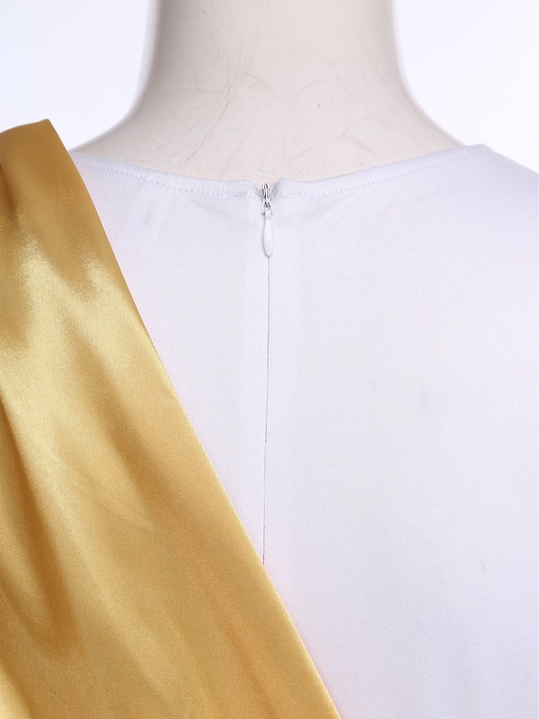 Crafted from a blend of polyester and spandex, this dress offers both durability and stretch, ensuring a comfortable and flexible fit.