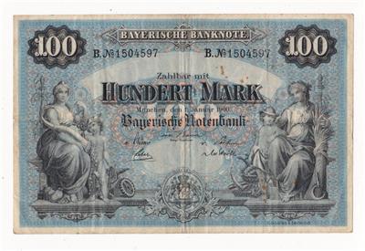 A Bavarian 100 Mark Banknote issued by the Bayerische Notenbank in München (Munich), and dated 1st January 1900.