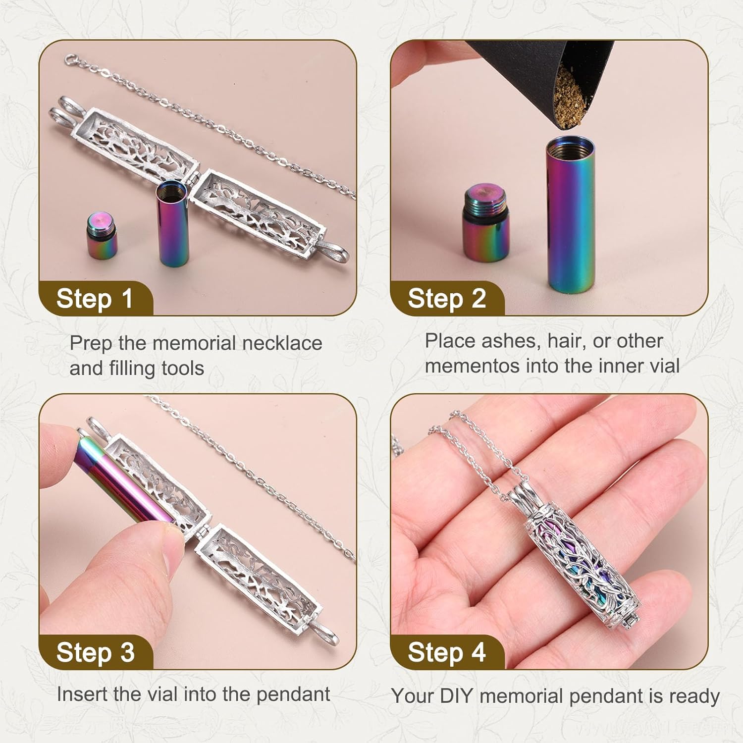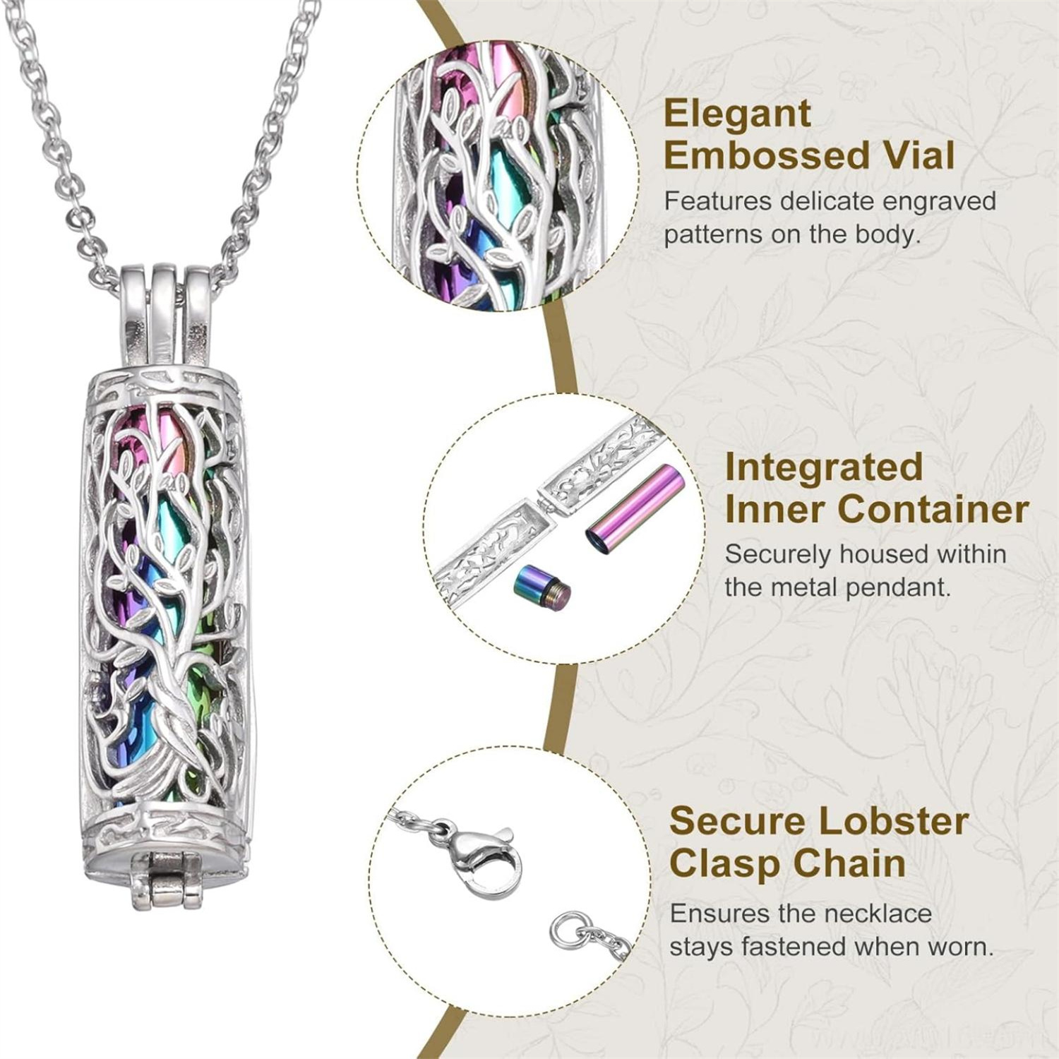 Die Kombination aus Urne, Parfümflasche und Baum des Lebens Anhänger in einem, kann es Tier Asche, Fell, und Gedenk Düfte / ätherische Öle - mehrere Zwecke, um Schichten der Erinnerung zu tragen.