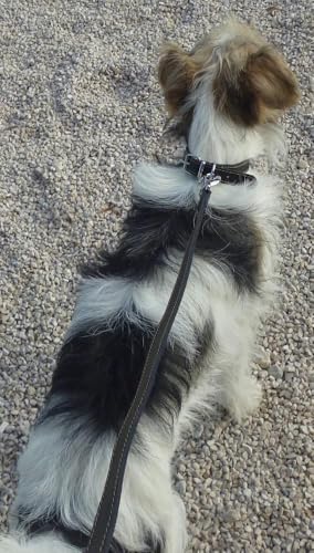 AIME Laisse noir en cuir, Longue laisse pour chien 1,20m, Souple et Résistante