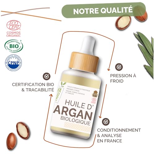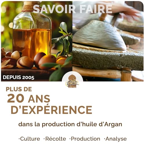 Huile D’Argan BIO Certifiée ECOCERT du Maroc - Anti-rides et Nourrissante – 100% Pure 50ml - Soin pour Peau Magnifique et Cheveux Sublime, Pressée à froid et filtrée, Qualité supérieure garantie